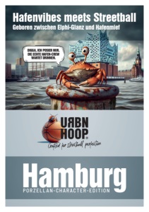 Hafenvibes meets Streetball Geboren zwischen Elphi-Glanz und Hafenmief PORZELLAN-CHARACTER-EDITION DIGGA, ICH POSIER NUR. DIE ECHTE HAFEN-CREW WARTET DRINNEN.